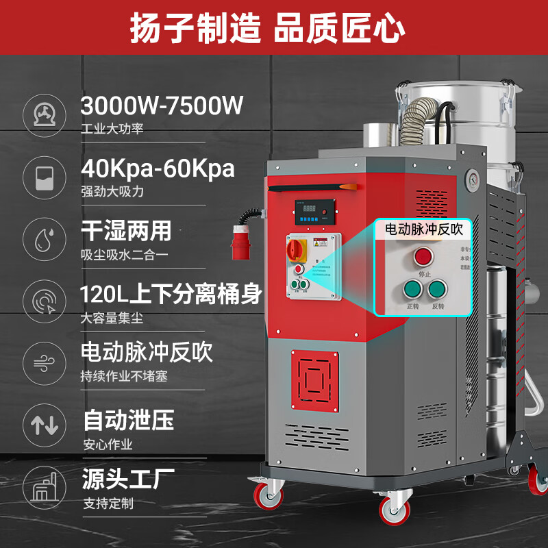 揚(yáng)子吸塵器YZ-C12,自動泄壓更安全可靠,120L不銹鋼桶身,可分離設(shè)計方便清潔垃圾,擁有自動反吹清灰系統(tǒng)。